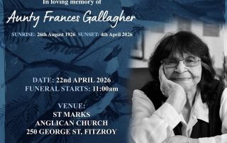 Aunty Frances Gallagher (26th August 1926 - 4th April 2026) Our community has lost a warrior and champion for our rights in the passing [...]