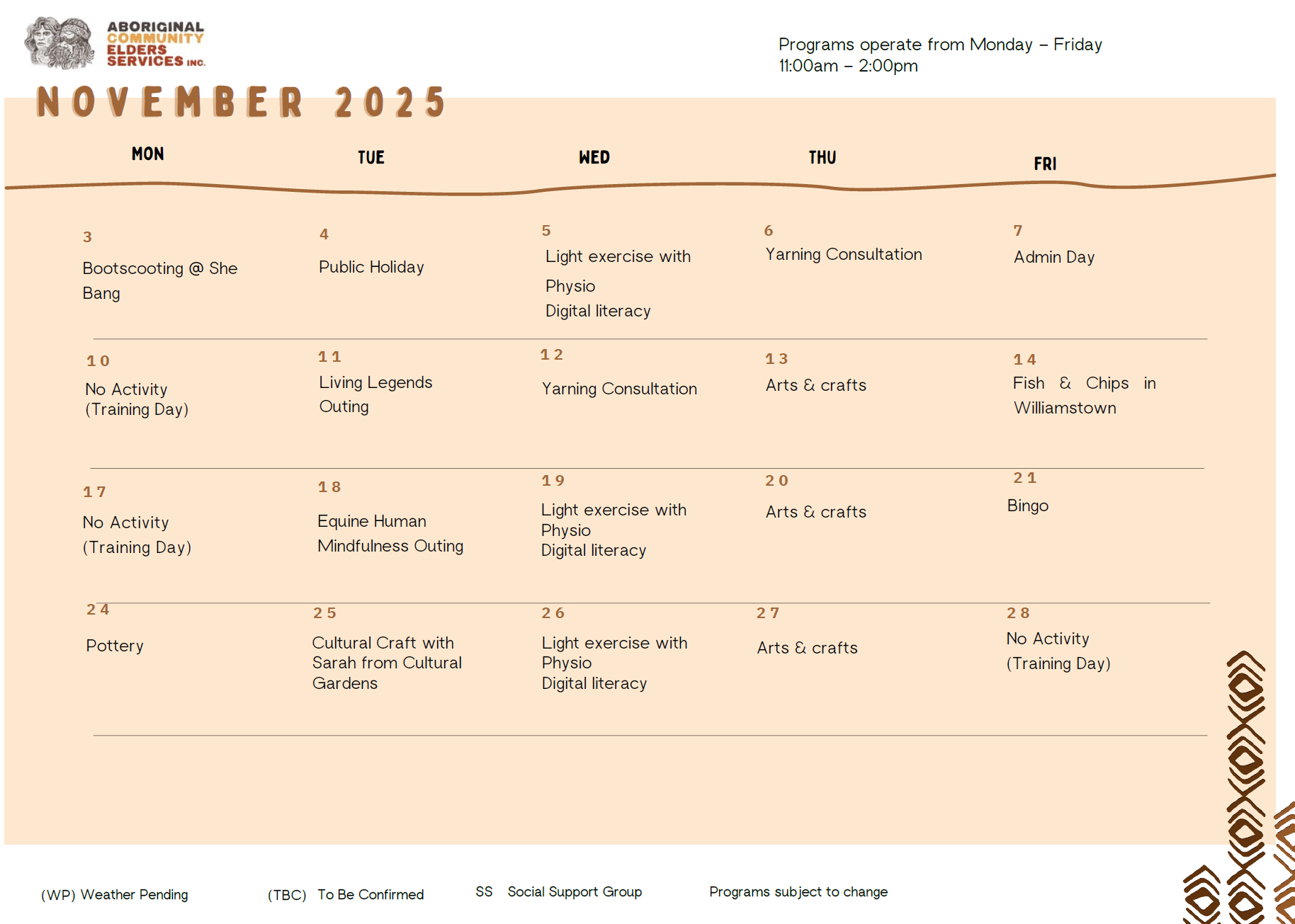 Social Support Calendar for November 2025